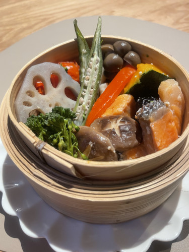 ・季節の野菜と塩麹鮭の蒸籠蒸し